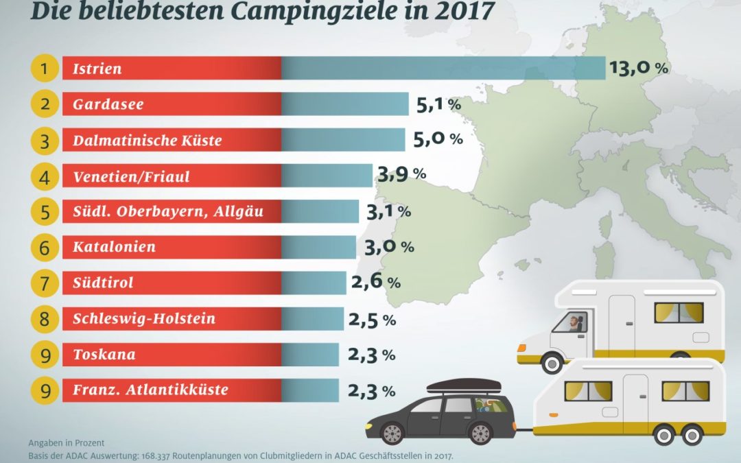 Die beliebtesten Campingziele im Jahr 2017. Bild: ADAC e.V.