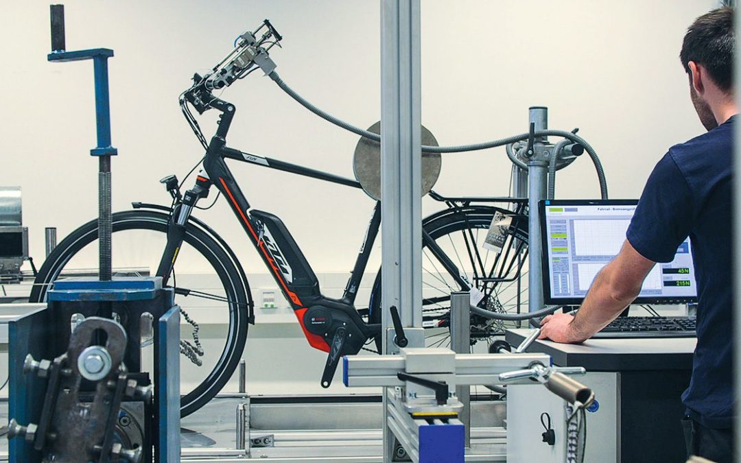 E-Bike-Sicherheitsprüfung im Labor. Bild: Stiftung Warentest.