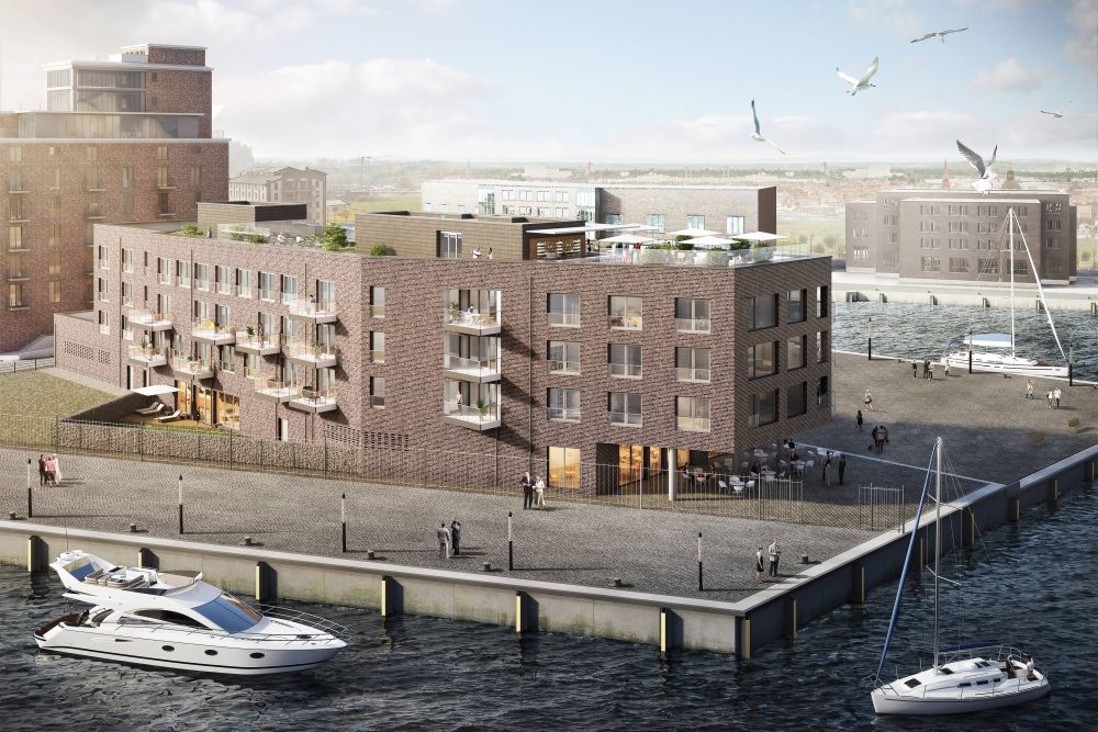In exponierter Lage am Wismarer Hafen entstehen 39 neue Ferienwohnungen. Bild: Penta Real Estate.