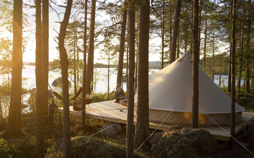 Natur und Luxus in einem beim Glamping am See Hinsen in der mittelschwedischen Region Dalarna. Bild: Jakob Wallin.