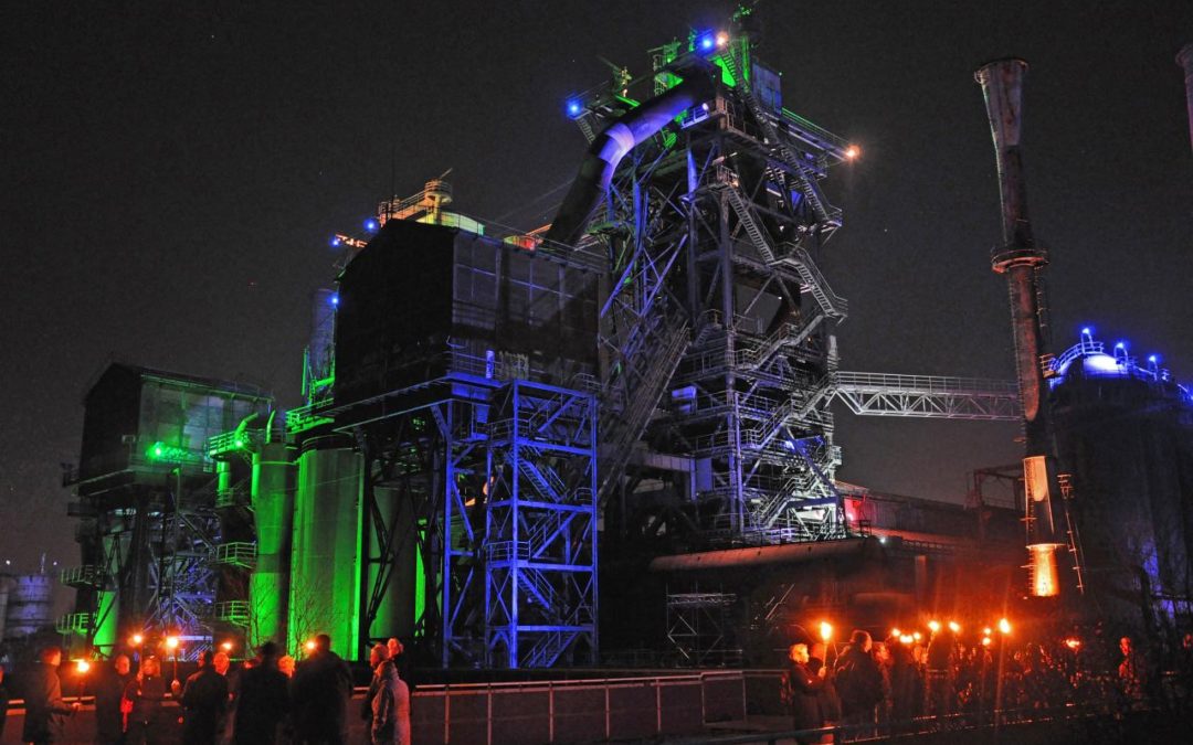Fackelführung im dunklen Landschaftspark Duisburg. Bild: © Ruhr Tourismus/ Jochen Schlutius.