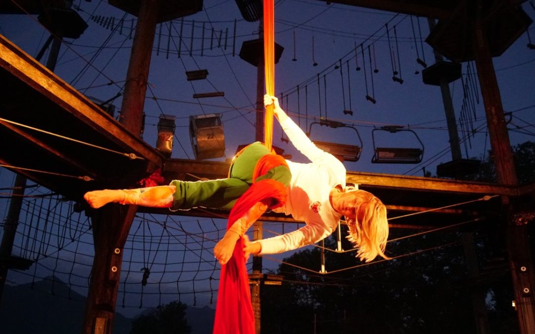 Luftakrobatik im Hochseilgarten Isarwinkel. Bild: (c) Hochseilgarten Isarwinkel.