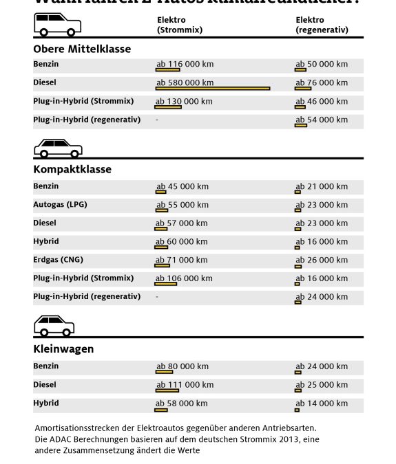 Eine ADAC Studie zur Umweltfreundlichkeit verschiedener Antriebstechniken lässt keine pauschale Aussage zu. Bild: ADAC-Grafik.