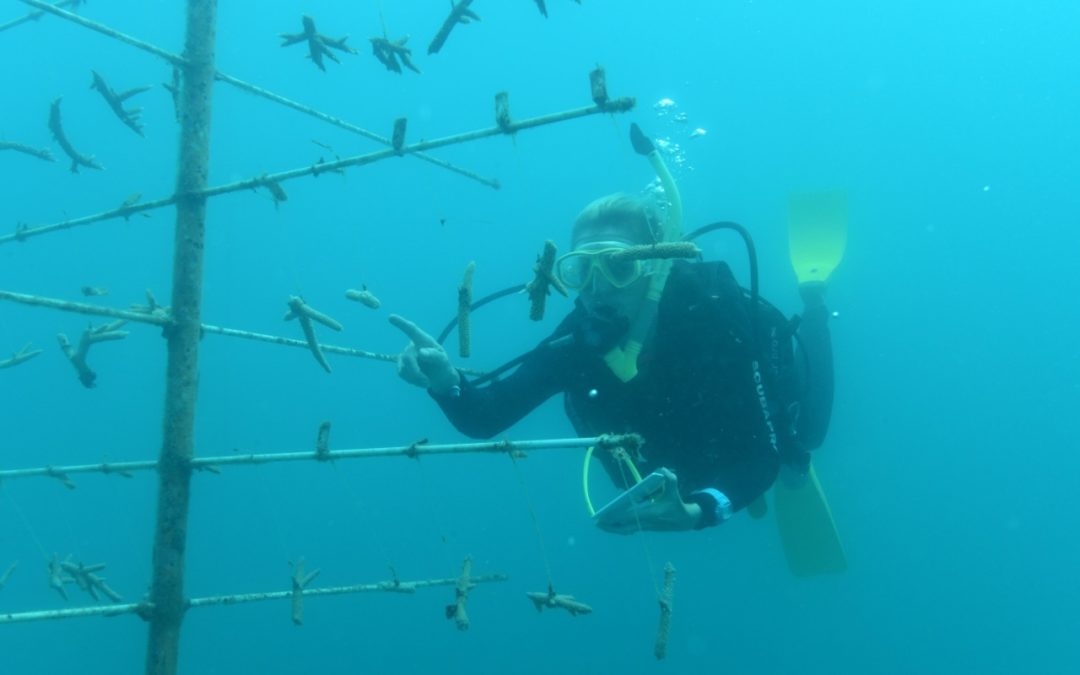 Die Korallen-Aufzuchtstation am Great Barrier Reef zeigt erste Erfolge. Die Korallen werden an künstlichen Korallenbäumen aufgezogen. Bild: (c) Reef Restoration Foundation.