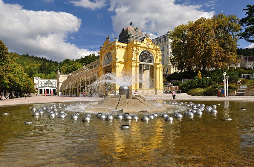 Singende Fontäne und Kolonnaden im Kurort Marienbad. Bild: CzechTourism/Ladislav Renner.