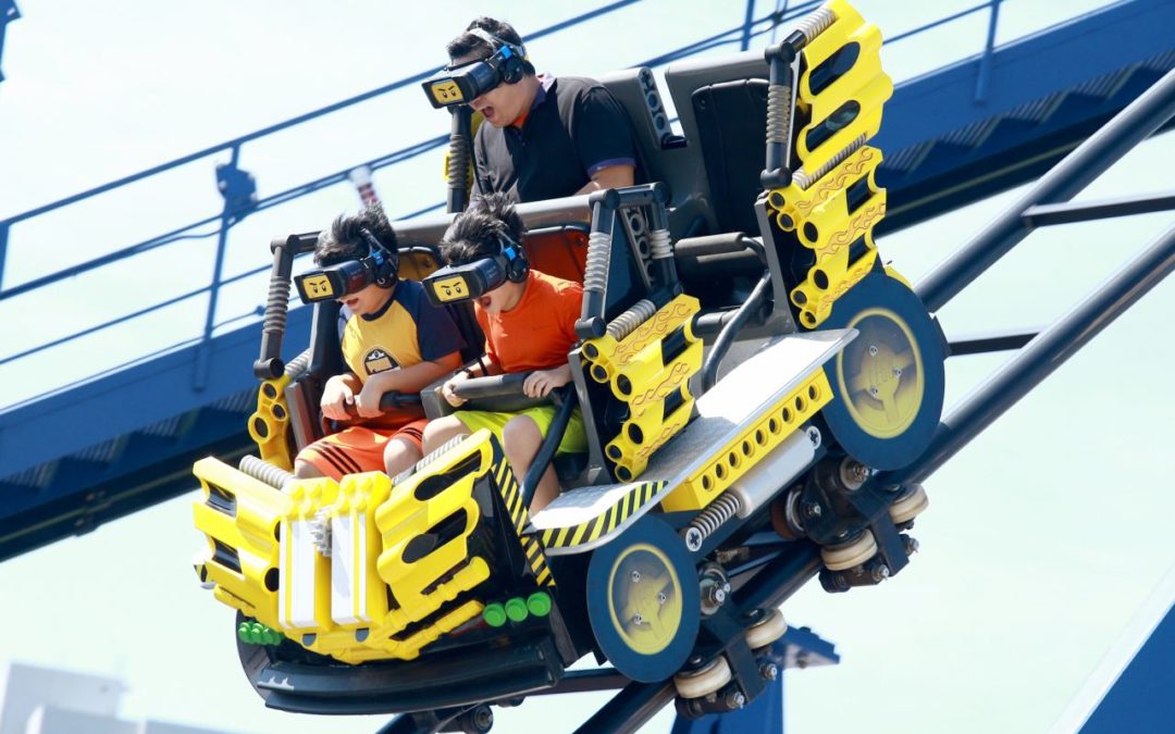 Bei der ersten Virtual Reality (VR) Achterbahn im LEGOLAND werden mittels Bluetooth-Technologie virtuelle Bilder im Fahrgeschäft "Project X" mit wilden Drehungen, Wendungen und Abfahrten synchronisiert. Bild: LEGOLAND Deutschland.