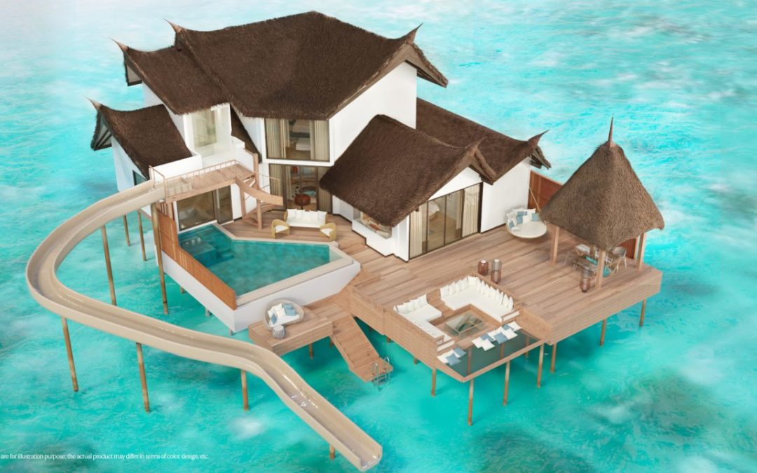 Modell einer Wasservilla (Private Ocean Retreat) mit Wasserrutsche im Jumeirah Vittaveli. Bild: Jumeirah Vittaveli.