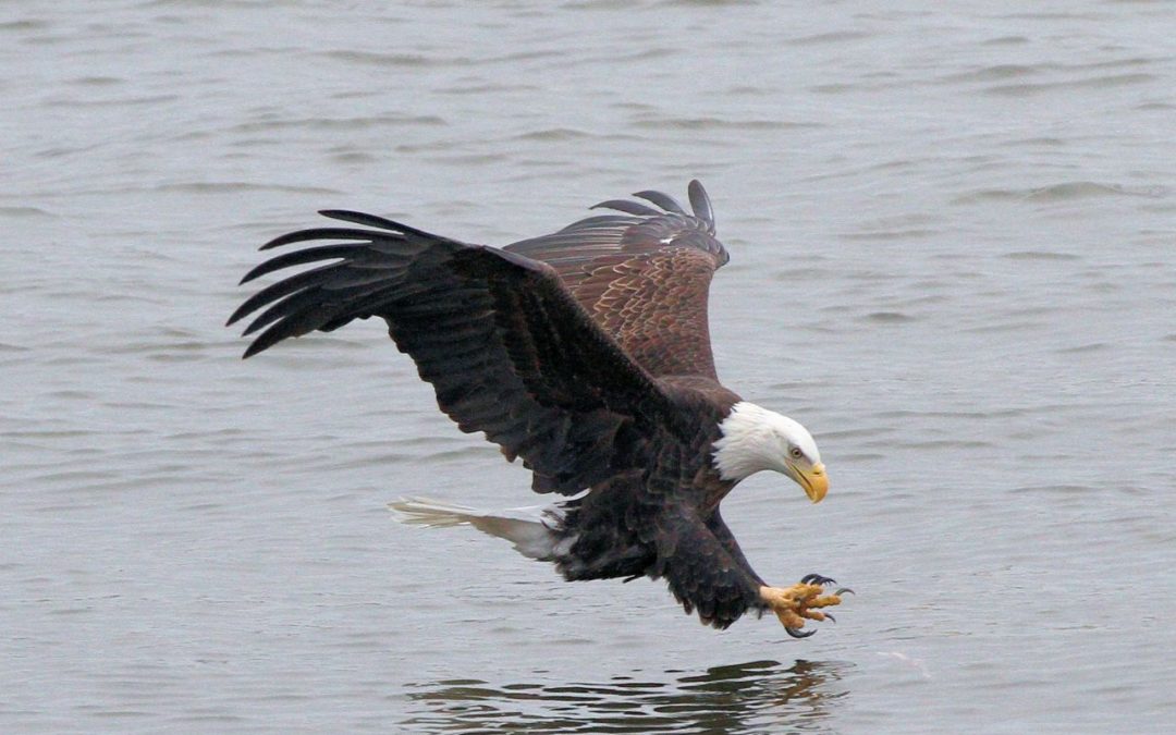 Weißkopfseeadler auf Fischfang. Bild: Great River Road Illinois.