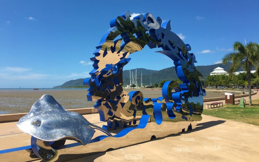 Die neu errichtete Skulptur "Citizens Gateway to the Great Barrier Reef" an der Esplanade in Cairns. Bild: TEQ.