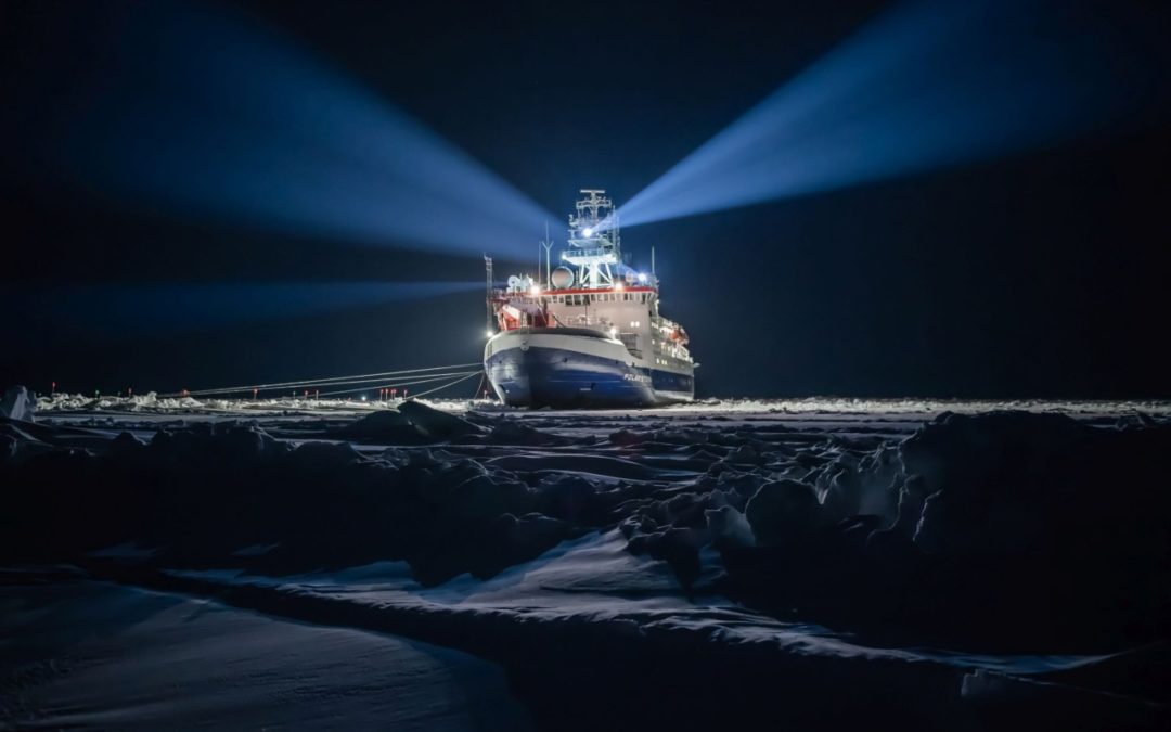 Forschungsschiff Polarstern in der arktischen Nacht. Bild: © Alfred-Wegener-Institut/Esther Horvath