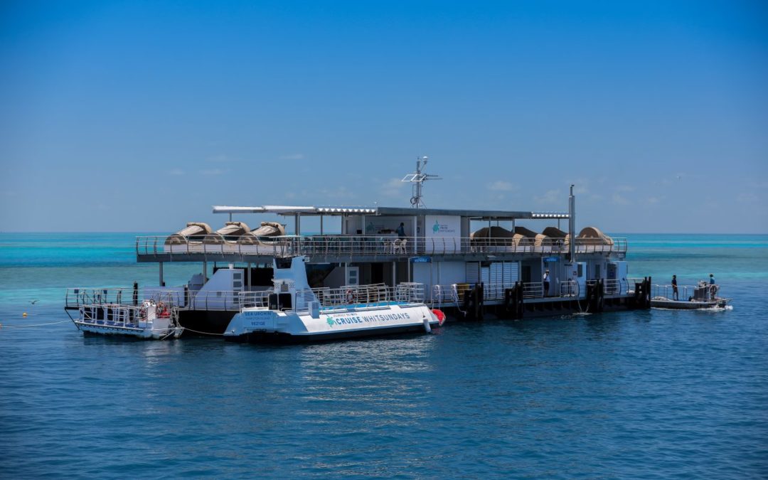 Auf der neuen Plattform "Reef World" in den Whitsundays können Queensland-Urlauber unter der Wasseroberfläche übernachten. Bild: Cruise Whitsundays.