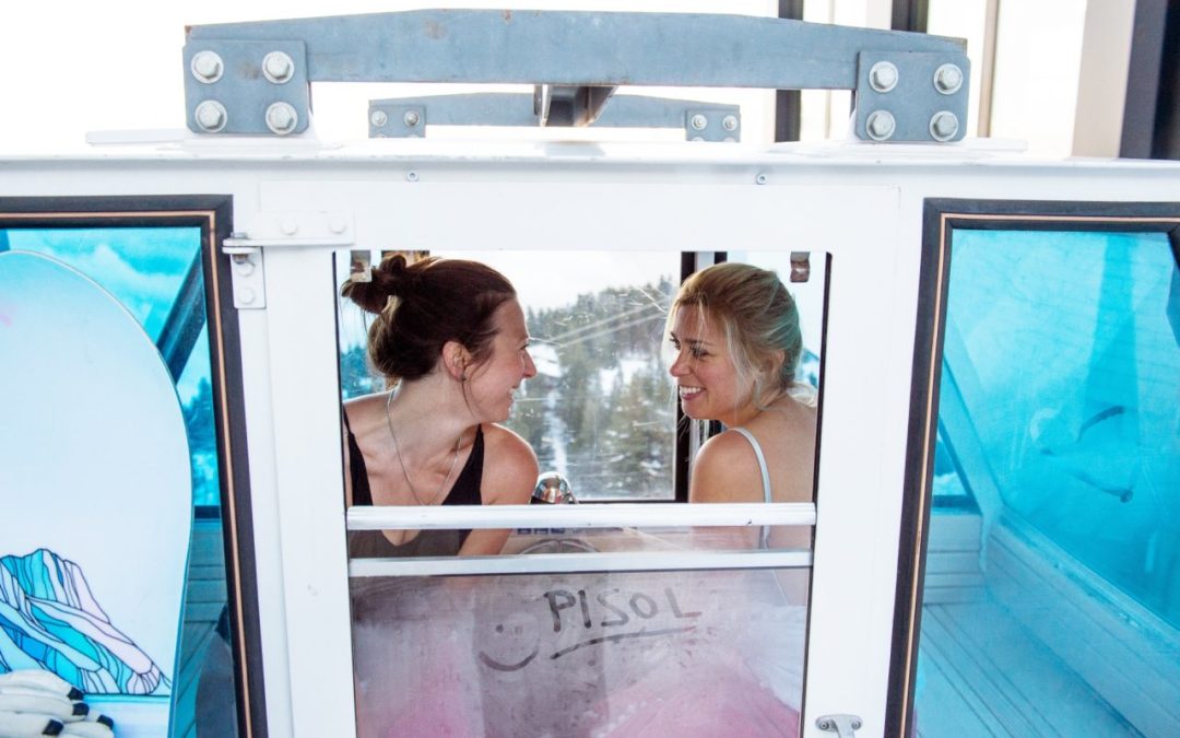 Die Saunagondel am Pizol bietet einen therrlichen Ausblick auf die Skipisten. Bild. Pizolbahnen.