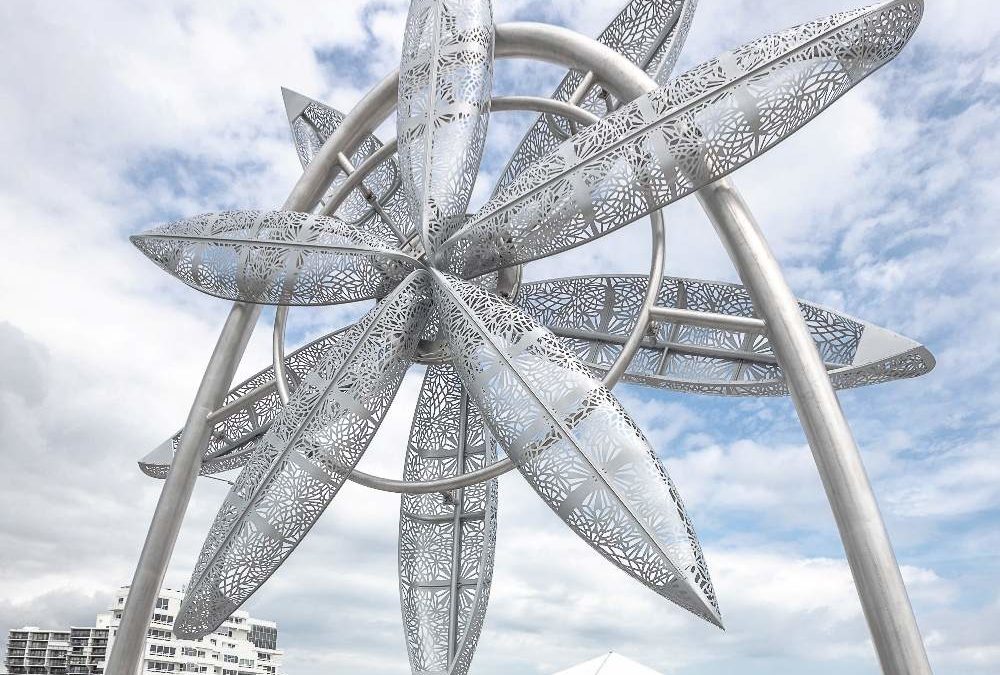 Zehn Aluminium-Kanus bilden beeindruckendes Public Artwork auf der Lesner Bridge mit Blick über die Chesapeake Bay. Bild: Virginia Beach Convention & Visitors Bureau.