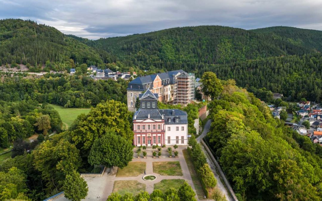 Schloss Schwarzburg hat eine wechselvolle Geschichte erlebt. Zum Tag der Sommmerfrische ist im Schlosspark eine 'lange Tafel der regionalen Produkte' aufgebaut. Bild: © Regionalverbund Thüringer Wald e.V. / Dominik Ketz.