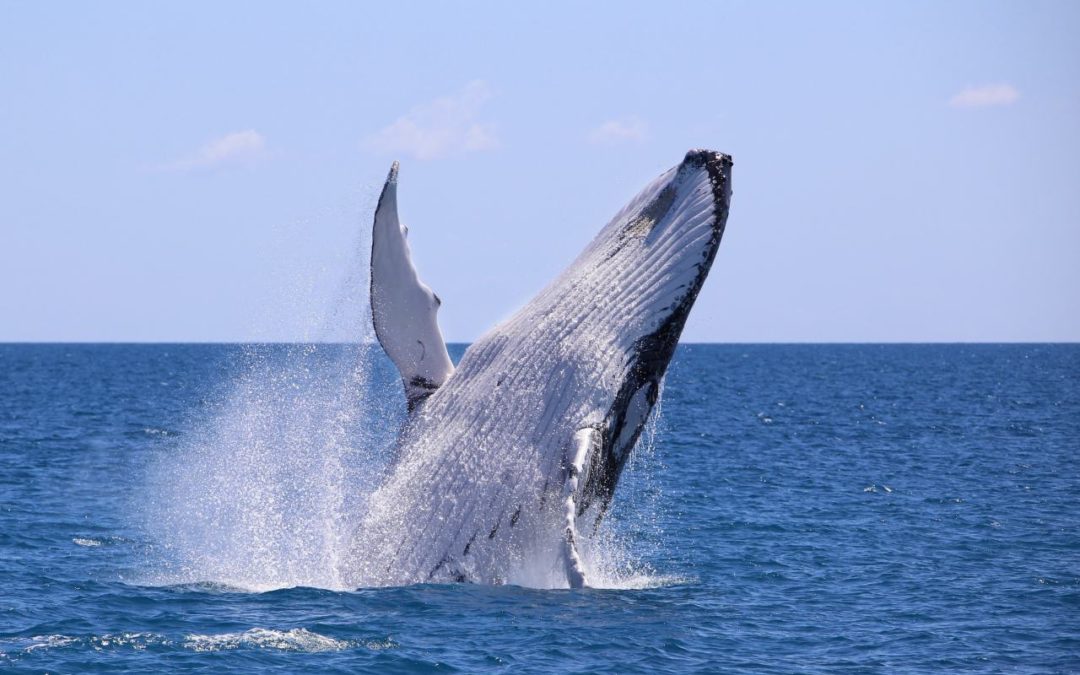 Mit etwas Glück können Teilnehmer der idigenen Walbeobachtungstouren auch springende Wale beobachten. Bild: Yalingbila Tours.