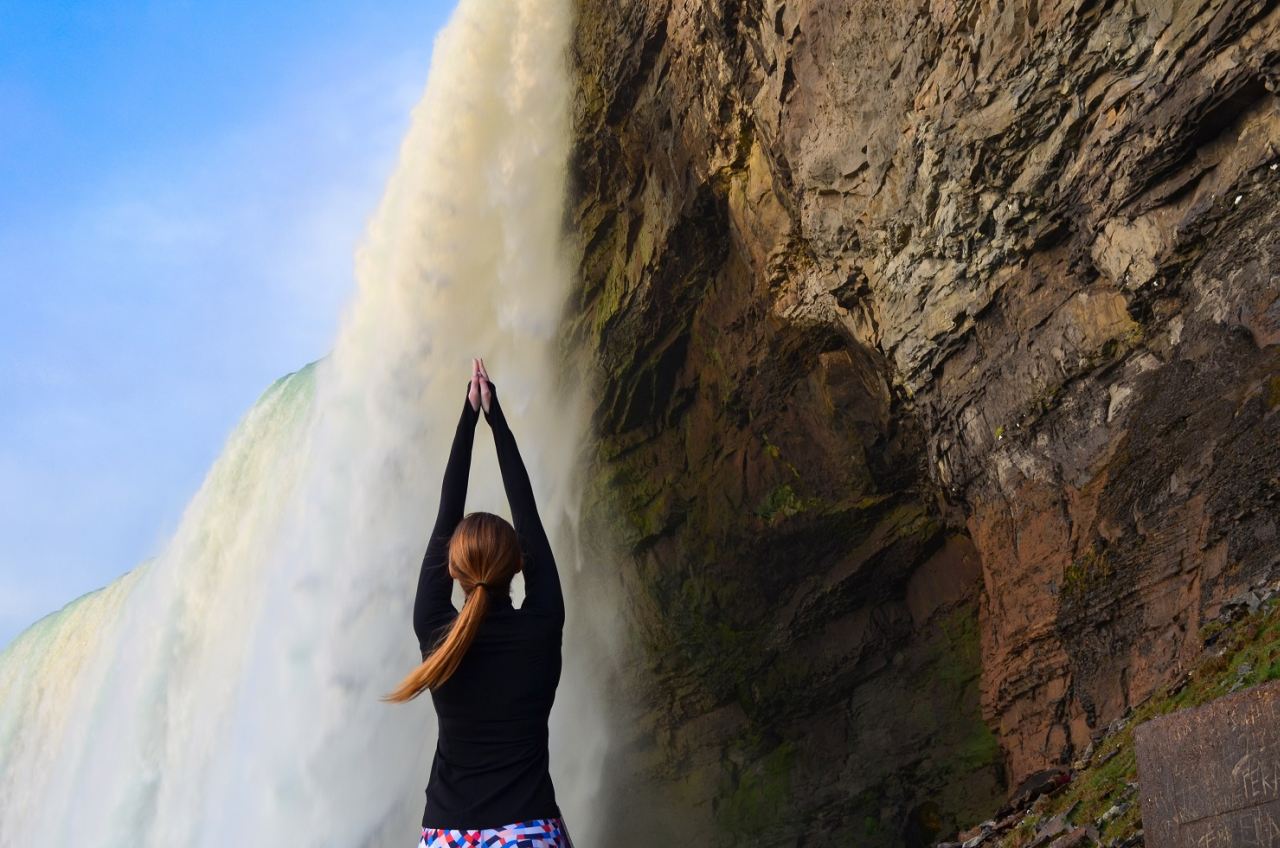 …unter den Niagarafällen: Namaste und nass! Die Anfängerkurse von Namaste Niagara laden zum Verbiegen auf einer Aussichtsplattform direkt unter den tosenden Wassermassen. Während der Sonnengruß geübt wird, sorgt Ontarios spektakuläres Naturwunder nicht nur für eine äußerst ungewöhnliche Kulisse, sondern auch für die ein oder andere Abkühlung während der anstrengenden 45 Minuten. Tickets starten bei $50 (ca. 34 €) und beinhalten eine Bootstour hinter die Niagarafälle sowie ein Frühstück.