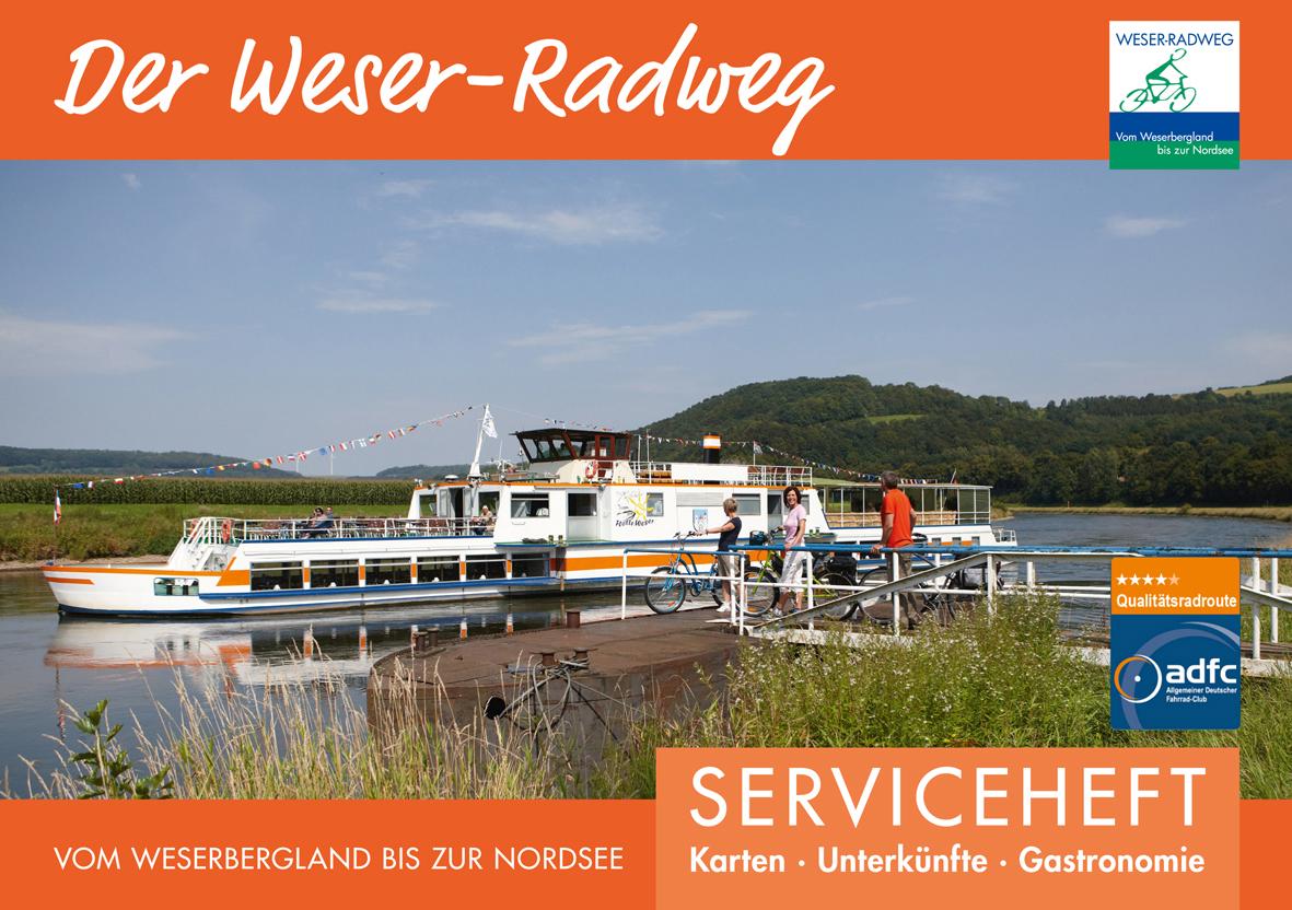 Das Weser-Radweg Serviceheft wird im Rahmen der Weser-Radweg Infozentrale Kooperation vom Weserbergland Tourismus e.V. in Zusammenarbeit mit den anrainenden Regionen entlang der Weser (Mittelweser-Touristik GmbH, Touristikgemeinschaft Wesermarsch, Kulturland Teufelsmoor, BTZ Bremer Touristik-Zentrale, Erlebnis Bremerhaven GmbH und Cuxland Tourismus) alle zwei Jahre neu produziert und vertrieben. (Weserbergland Tourismus)