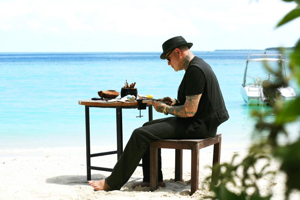 Von München auf die Malediven: Der Schweizer Schmuckdesigner Patrik Muff arbeitet ausschließlich mit ausgesuchten Partnern, wie beispielsweise der Porzellan Manufaktur Nymphenburg oder BIRKENSTOCK zusammen. Ostern 2019 verlegt der kreative Kopf sein Atelier von München erneut auf die Malediven. Bereits zum zweiten Mal gibt Muff auf den traumhaften Luxusresorts Amilla Fushi (17. und 18. April 2019) und Finolhu (20. und 21. April 2019) einen Workshop zwischen Palmen.