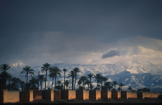 Im Süden des gastfreundlichen Landes finden sich gänzlich unterschiedliche Landschaften – heiße Sandwüsten als Randlandschaften der Sahara, schneebedeckte Berggipfel, tiefe Canyons, grüne Täler. Und überall finden sich Obstgärten, Palmenhaine, Rosengärten und Felder. Von Südwesten bis Nordosten erstreckt sich über 800 Kilometer das Hohe Atlasgebirge mit seinen schroffen Gebirgsformen und steilen, schneebedeckten Gipfeln und der höchsten Erhebung Marokkos, dem Jabal Toubkal (4.167 Meter). Der Hohe Atlas geht in den niedrigeren algerischen Sahara-Atlas über und im Zentrum Marokkos in den etwa 300 Kilometer langen Mittleren Atlas.