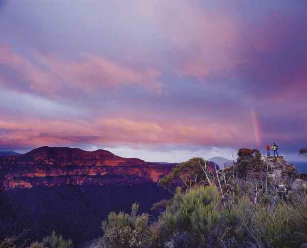 Sydney ist Ausgangspunkt für viele aufregende Touren in New South Wales, denn nur wenige Stunden Fahrt sind nötig, um herrlich im Busch zu wandern, zu klettern, eine Weinprobe zu nehmen oder ganz alleine an einem goldfarbenen Sandstrand auszuspannen. Nur eine Autostunde von Sydney entfernt liegen die Blue Mountains, ein hohes Sandsteinplateau mit Canyons und Schluchten, Wasserfällen, Sandsteinfelsen, bizarren Felsformationen, grünem Buschland und weiten Eukalyptuswäldern, die diesen Nationalpark in seinen charakteristischen blauen Dunst hüllen. Das ausgedehnte Wildnisgebiet, das zum UNESCO-Weltkulturerbe zählt, eignet sich nicht nur zum Relaxen, Wandern und für Reitausflüge, sondern ebenso für Bootsfahrten und Kletterpartien. Die berühmten Felsformationen am Echo Point, „The Three Sisters“, gewähren einen interessanten Einblick in die mystische Kultur der Aborigines. Die pittoresken Touristenzentren der Region, Katoomba und Jenolan Caves, werden durch den 40 Kilometer langen, atemberaubenden Six Foot Track miteinander verbunden. Die Höhlen der berühmten Jenolan Caves bestehen aus spektakulären Kalksteinfelsen, Säulen und unterirdischen Seen, die zusammen ein eindrucksvolles Labyrinth bilden.