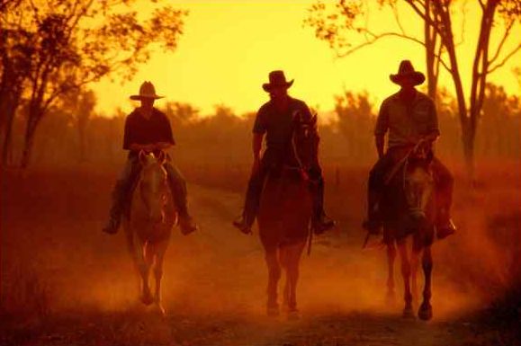 Romatik pur - Cowboys reiten im Sonnenuntergang Australiens