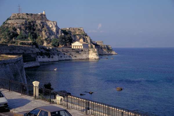 Die sichelförmige Bucht von Ágios Geórgius, oder San George, wie es auch genannt wird, an der Nordwestküste ist zweifelsohne eine der reizvollsten Urlaubsdestinationen auf Korfu. Unterhalb der steil ansteigenden Berghänge und zwischen uralten Olivenhaien hat sich ein hübscher Ferienort ausgebreitet. Die Entfernung zu Korfu-Stadt, mit dem Auto gebraucht man gute anderthalb Stunden, hat dazu beigetragen, das hier eine gesunde touristische Infrastruktur herangewachsen ist. Zwar mangelt es dem Urlauber an nichts -es gibt eine reiche Auswahl an Geschäften, Tavernen und Discotheken- doch hat sich Ágios Geórgius einen gewissen individuellen Charme erhalten. Auch beim Bau der Unterkünfte hat man darauf geachtet, mehr auf Qualität denn Quantität zu setzen und sterile Riesenbauten vermieden.