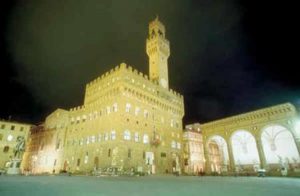 Palazzo Vecchio angestrahlt bei Nacht. Bild: ENIT/Vito Arcomano