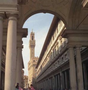 Die Uffizien in Florenz dienten ursprünglich zur Unterbringung von Ministerien und Ämtern in Florenz errichtet worden. Das italienische „uffici“ bedeutet Büro daher der Name Uffizien. Die Architekten waren Bernardo Buontalenti, Alfonso Parigi und Giorgio Vasari. In den weitläufigen Räumen sind zahlreiche Kunstschätze ausgestellt, die Gemäldegalerie in den Uffizien ist die älteste der Welt. In den Fluren des U-förmigen Gebäudes sind griechische und römische Statuen ausgestellt. Die prächtigen Gemälde hängen in den angrenzenden Räumen in chronologischer Rheinfolge. Hier zeichnet sich die Entwicklung der florentinischen Kunst von der Gotik bis zur Renaissance und darüber hinaus ab.