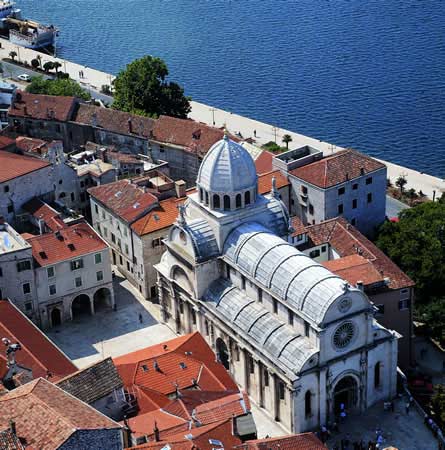 Von eben diesem städtischen Selbstbewusstsein kündet die Kathedrale von Sibenik, die als das bedeutendste Baudenkmal der Renaissance in Kroatien gilt und Bestandteil des UNESCO-Weltkulturerbes ist. Einzigartig ist das in über 100 Jahren Bauzeit verwendete Konstruktionsverfahren. So wurde der Sakralbau ohne die Verwendung von Mörtel und allein durch die präzise Schichtung und Anpassung von Steinplatten und -blöcken errichtet. Ein Bronzedenkmal vor dem Dom erinnert an den Schaffer des Kunstwerks, den Baumeister Juraj Dalmatinac. Die Kathedrale liegt im autofreien Zentrum der Sibeniks, unweit der Hafenpromenade, an der auch der ehemalige Bischofspalast und der Herzogspalast aus dem 15. Jahrhundert zu finden sind.