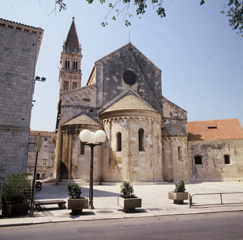 Das Mittelalter war unumstritten die Blütezeit Trogirs, dessen historisches Erbe sich der Ort wunderbar erhalten konnte. Die auf einer kleinen Insel gelegene Altstadt ist über eine Brücke zu erreichen und teilt sich in das eigentliche Zentrum und die Vorstadt der Landarbeiter, die innerhalb der mittelalterlichen Stadtbefestigung lag. Den Besucher erwarten verwinkelte Gassen, die von gotischen Häusern gesäumt werden. An den Plätzen stehen Renaissancepaläste mit reichen Verzierungen und Statuen. Höhepunkt des historischen Ensmbles ist die Sveti Lovro, Sankt-Laurntius-Kathedrale, dessen detailreich ausgearbeitetes Portal Szenen aus der Bibel zeigt. Wer den Sakralbau betritt wird feststellen, dass die Kathedrale zu Recht einen der kunstgeschichtlichen Sternstunden Dalmatiens darstellt. Am selben Platz wie die Kathedrale befinden sich der Händlerpalast Palais Cipiko und das Rathaus, an denen sich der venezianische Einfluss auf die Architektur Trogirs erkennen lässt.