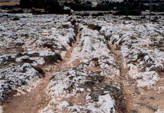 Mysteriöse Karrenspuren auf Malta am Clapham Junction. Bild: Gaby Schulemann.