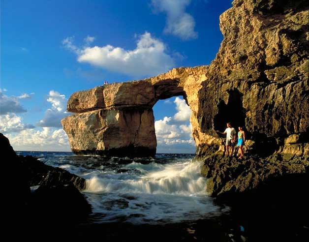 Mit kleinen Ausflugsbooten oder nach Absprache mit einem der Fischer kann man das „Wagnis“ eingehen. Die Fahrten führen anschließend zumeist entlang der Küste zum „Azure Window“, einem natürlichen Torbogen, der aus einem Felsblock im Wasser und einer darüberliegenden Gesteinsplatte vom Festland gebildet wird.