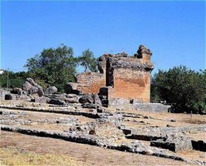 Eine weitere Besonderheit, die man in Milreu ans Tageslicht beförderte, sind die Grundmauern eines Nymphäums. Das römische Heiligtum zeichnet sich dadurch aus, das es der einzige Umgangstempel der iberischen Halbinsel ist. Ein Podium, auf dem sich einstmals ein Wasserbecken befand, symbolisiert auch hier die Bedeutung des Elementes Wasser.