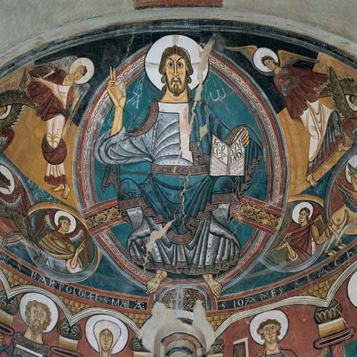 Christus als Weltenherrscher, ein Gemälde aus der romansichen Abteilung des Museu Nacional d’Art de Catalunya (MNAC). Bild: Tourspain