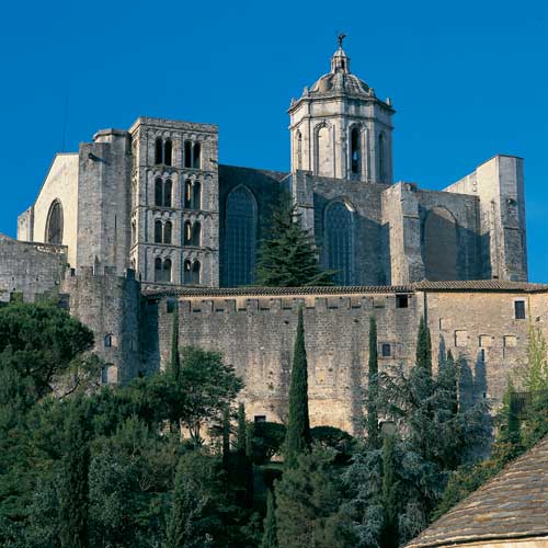 Girona ist eine Stadt, die hervorragend zu Fuß erkunden werden kann. Größte Sehenswürdigkeit ist die wichtigste Kathedrale Kataloniens, die schon weithin sichtbar über den farbenfrohen Bauten des historischen Kerns aufragt. Eine mächtige barocke Freitreppe führt in das Gotteshaus, dessen Bauzeit 1312 begann und fast dreihundert Jahre andauern sollten. Das Hauptschiff mit einer Länge von 50 Metern und einer Breite von 23 Metern ist einer der größten überwölbten gotischen Räume. An die Kathedrale angegliedert ist das Museum mit dem Kirchenschatz, dessen wertvollstes Stück der sogenannte Schöpfungsteppich ist. Das Kunstwerk, ist eine Seidenstickerei aus dem 11. Jahrhundert, das Christus als Mittelpunkt der Schöpfungsgeschichte darstellt. Weitere sakrale Exponate sind im benachbarten Museu d’Art ausgestellt.