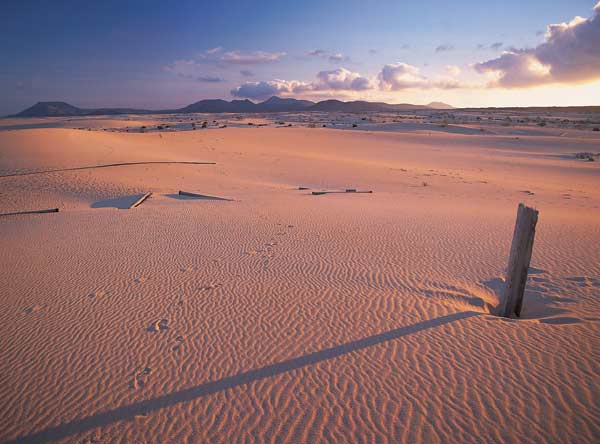 Ihren Ursprung haben die Dünen von Corralejo nicht, wie oft behauptet, im Sand der Sahara, der durch den Wind hierher getragen wurde, sondern in Meer. In vielen Millionen Jahren haben die Urgewalten des Meeres die einstigen Korallenbänke vor der Insel zerrieben und Muscheln und andere Schalentiere zu feinstem Sand zermahlen. Bestätigt treibt der Wind die Dünen landeinwärts, die bei ihrer Wanderung alles begraben, was sich ihnen in den Weg stellt. Das gilt auch für die Straße nach Puerto del Rosario, die in regelmäßigen Abständen von den Verantwortlichen wieder frei geräumt werden muss.