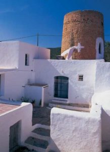 Bei Gefahr zogen sich die Einwohner mittels Strickleitern, die nach dem Aufstieg eingeholt wurden, auf die türlosen Türme zurück und verharrten dort so lange, bis die Gefahr gebannt war. Die dazu gehörigen kubischen Wohnhäuser mit ihren dicken Mauern verkörpern den typischen ibizenkischen Baustil. Zur bessern Tarnung waren die Gebäude in vergangenen Zeiten jedoch nicht weiß getüncht, sondern verblieben in der Farbe des beigen Natursteins.