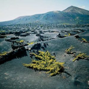 Die trichterförmigen Ausbuchtungen, die kleinen Mäuerchen und das leuchtende Grün der Weinpflanzen im Kontrast zu der schwarzen Vulkanerde geben in ihrer Wiederholung ein so einmaliges Bild, das La Geria in den 1960er Jahren vom New Yorker Museum of Modern Art zum Gesamtkunstwerk erklärt wurde.