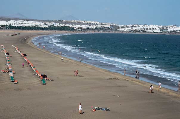 Die Playa de los Pocillos ist mit einer Länge von über einem Kilometer der größte Strand des Touristenzentrums Puerto del Carmen an der Südostküste Lanzarotes. Im hellen Sand und am flachen Ufer finden Familien genügend Raum, in dem sie ihre Kinder sorglos spielen und planschen lassen können. Auf Liegen und unter Sonnenschirmen genießt man die Ruhe vom städtischen Treiben, erreicht jedoch auch in kurzer Zeit das lebhafte Zentrum von Puerto del Carmen mit seinen Einkaufs- und Unterhaltungsmöglichkeiten.