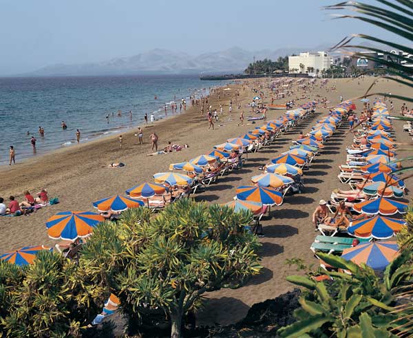 Zwei Drittel aller Touristen, die Lanzarote besuchen, verbringen ihren Urlaub in Puerto del Carmen, dem größten Ferienzentrum der Insel. Kaum mag man glauben, dass der heute so quirlige Urlaubsort noch in den 1950er Jahren gerade einmal 450 Einwohner zählte. Auf eine Länge von zehn Kilometern reihen sich im Schatten der Küstenstraße Avenida del las Playas die Hotels, Appartementanlagen, Restaurants und Geschäfte. Die Atmosphäre ist international, denn hier findet in dem großen Angebot ein jeder für sich das Richtige; neben Deutschen und Engländern trifft man auch zahlreiche Festlandspanier und Italiener.