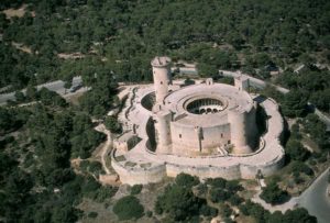 Etwas außerhalb der Innenstadt, westlich der Hafenbucht von Palma steht auf einem 113 Meter hohen Hügel das Castell de Bellver. So gleich sticht bei der Burg, die Festungs- und Prachtbau gleichermaßen ist, der ungewöhnliche, kreisrunde Grundriss ins Auge, der in ganz Europa einzigartig ist. Drei Türme flankieren den Rundbau, ein weiterer, durch eine Brücke mit der Festung verbunden, diente als vorgezogener Verteidigungsposten.
