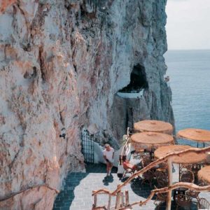 Neben den künstlichen Höhlengängen und -räumen gehört eine Terrasse, die über dem strahlend blauen Mittelmeer liegt, zur Ausstattung der ungewöhnlichen Sehenswürdigkeit. Hier kann man tagsüber Kaffee trinken, abends bei einem Cocktail blutrote Sonnenuntergänge genießen und abends zu elektrischer Loungemusik bis in die frühen Morgenstunden abtanzen. Am Musikpult stehen des Öfteren bekannte Szene-DJs, die auch in den europäischen Metropolen auflegen.