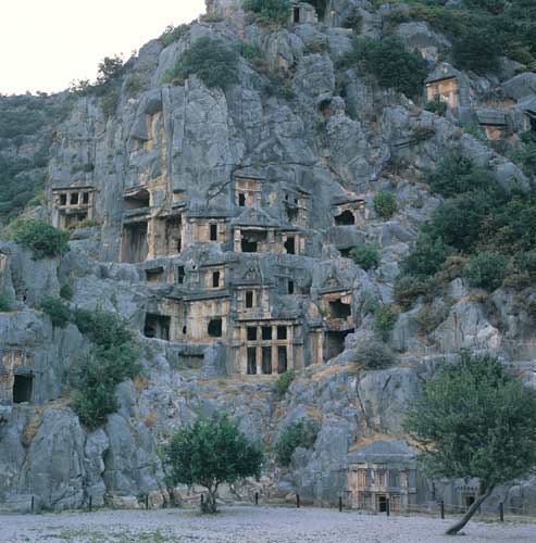 Auch von der antiken Stadt Myra, die ebenfalls ein Opfer des Schlamms des Demre-Flusses wurde, blieben Überreste erhalten. Die obere Cavea umfasst ca. 110 Meter. 38 Sitzreihen, umfangreiches Dekor und die Bühnentechnik machten die Aufführungsstätte im Altertum berühmt. Oberhalb der Akropolis, an der sich das Theater befindet, liegt die Totenstadt Myras. Die lykischen Gräber wurden direkt in den Fels gehauen und mit tempelähnlichen Portalen umrandet. Besonders die Ruhestätten der wohlhabenden Bürger sind mit zahlreichen Verzierungen, Inschriften und Reliefs versehen.