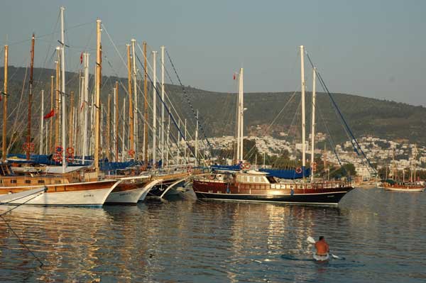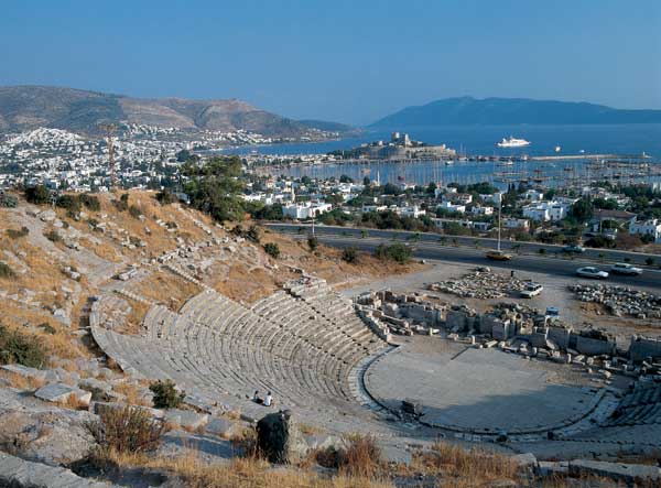 Die wichtigsten Punkte der Stadt liegen dicht zusammen. Vom Yachthafen, wo man sich für eine „Blaue Reise“ Mannschaft, Schiff oder Mitreisende suchen kann, gelangt man in die Altstadt, wo die Grundmauern des Mausoleums noch die überdimensionalen Ausmaße dieses Baus beweisen. Nordwestlich davon liegen mit dem restaurierten Theater und der Nekropole weitere Ruinen aus Bodrums antiker Vergangenheit.