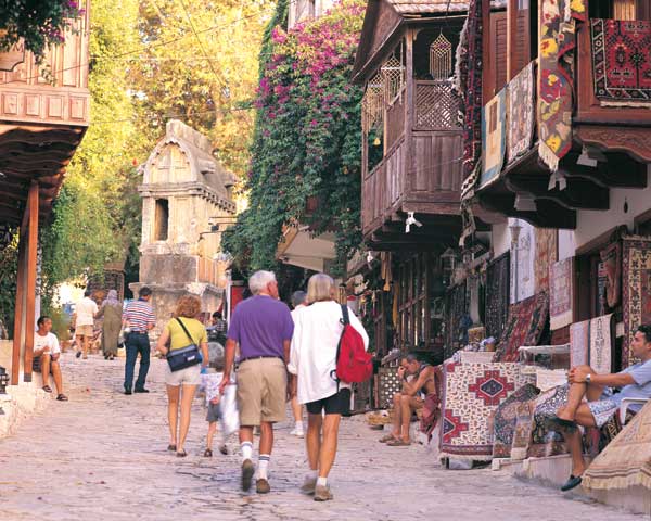 Gleich einem Amphitheater breitet sich Kas an der Südspitze Lykiens um eine idyllische Bucht aus. In früheren Zeiten vornehmlich von Griechen bewohnt, stellen die weißgetünchten Häuschen die typische Bebauung des malerischen Kerns der Kleinstadt dar, die von den angrenzenden steilen Bergen flankiert wird. Vom Hafen, der zu einer serviceorientierten Marina ausgebaut wurde, genießt man den besten Blick auf diese beeindruckende Kulisse und kann nebenbei das Getümmel der Ausflugsboote beobachten, die zu den schönsten Stränden der buchtenreichen lykischen Küste aufbrechen.