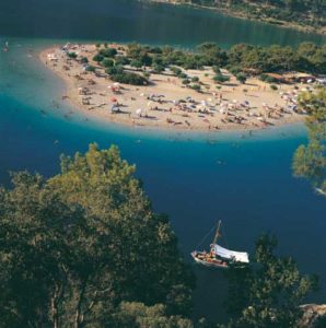 Die geschützte Lagune von Ölü Deniz ist einer der reizvollsten Badeplätze der Türkei und zugleich ihr beliebtestes Fotomotiv. Inmitten des türkisfarbenen Wassers der Bucht von Belçegiz gelegen, gerahmt von bewaldeten Berghängen des Taurus erstreckt sich die Landzunge mit ihrem feinen, weißen Sand. In der Hochsaison tummeln sich am Traumstrand die Menschenmassen, die zumeist mit dem Dolmus aus dem 13 Kilometer entfernten Fethiye oder dem Nachbarstrand Belcegiz anreisen, denn in Ölü Deniz herrscht seit Jahren Bauverbot. Bis auf eine Ferienanlage liegen die Hotels deshalb auch außerhalb des Naturschutzgebietes, der nächst größere Ort ist Belcegiz mit zahlreichen Einkaufsmöglichkeiten, Restaurants, Bars und Diskotheken.