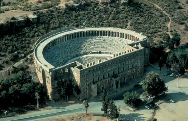 Das Theater der antiken Stadt Aspendos, die sich knapp 50 Kilometer östlich des Touristenzentrums Antalya an der Türkischen Riviera befindet, ist noch immer äußerst gut erhalten und sehr sehenswert. Bis heute werden hier in regelmäßigen Abständen Opernaufführungen und Konzerte mit berühmten Weltstars oder andere kulturelle Events veranstaltet, da das Theater über eine so überzeugende Akustik verfügt, dass für keine der Inszenierungen ein Verstärker oder Mikrophon notwendig ist. Den besten Blick auf die Bühne haben Besucher von der ebenfalls sehr guten Kolossalfassade des Theaters.
